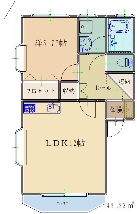 部屋番号/階数 | 1階 | ベランダ | 有 |